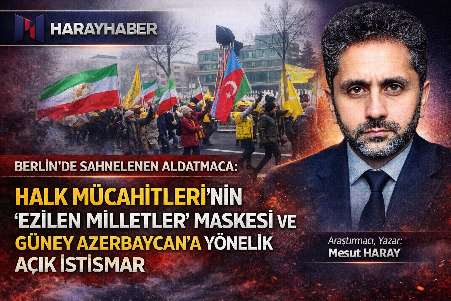 Almanya’nın Berlin kentinde İran Halk Mücahitleri Örgütü (MEK) tarafından düzenlenen son gösteride, sözde “ezilen milletleri temsil eden” bayrakların sergilenmesi, muhalif vitrin süslemesinden öteye geçmeyen hesaplı bir propaganda girişimi olarak kayda geçti. Gösteride Güney Azerbaycan Türklerini simgeleyen bayrakların sınırlı sayıda kişi tarafından taşınması, ilk bakışta dayanışma görüntüsü vermeyi amaçlasa da, gerçekte derin bir çelişkiyi ve ciddi bir siyasi ikiyüzlülüğü açığa çıkardı.
