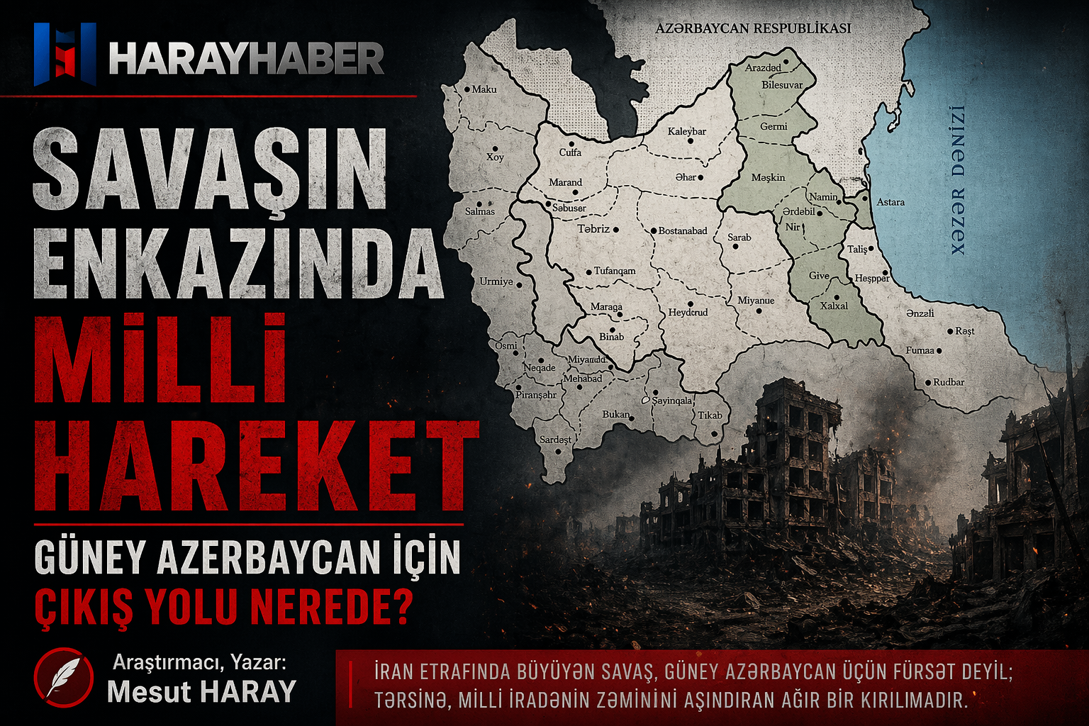 Sonuç: İran savaşı, Güney Azerbaycan milli hareketi için bir kurtuluş yolu değildir. Bu savaş ne dışarıdan beklenen özgürleşmeyi getirir, ne de merkeze sadakat gösterenlere hak dağıtır. Tam tersine: savaş, devlet baskısını daha da kanlılaştırır, toplumsal dokuyu paramparça eder, sanayi ve üretim altyapısını yerle bir eder, sivil kayıpları katlar ve milli hareketin stratejik enerjisini tüketir. Güney Azerbaycan için esas mesele, hangi dış gücün kimi vurduğu değildir; asıl mesele, milli iradenin hangi toplumsal, kültürel ve siyasî temeller üzerinde uzun vadede inşa edileceğidir.